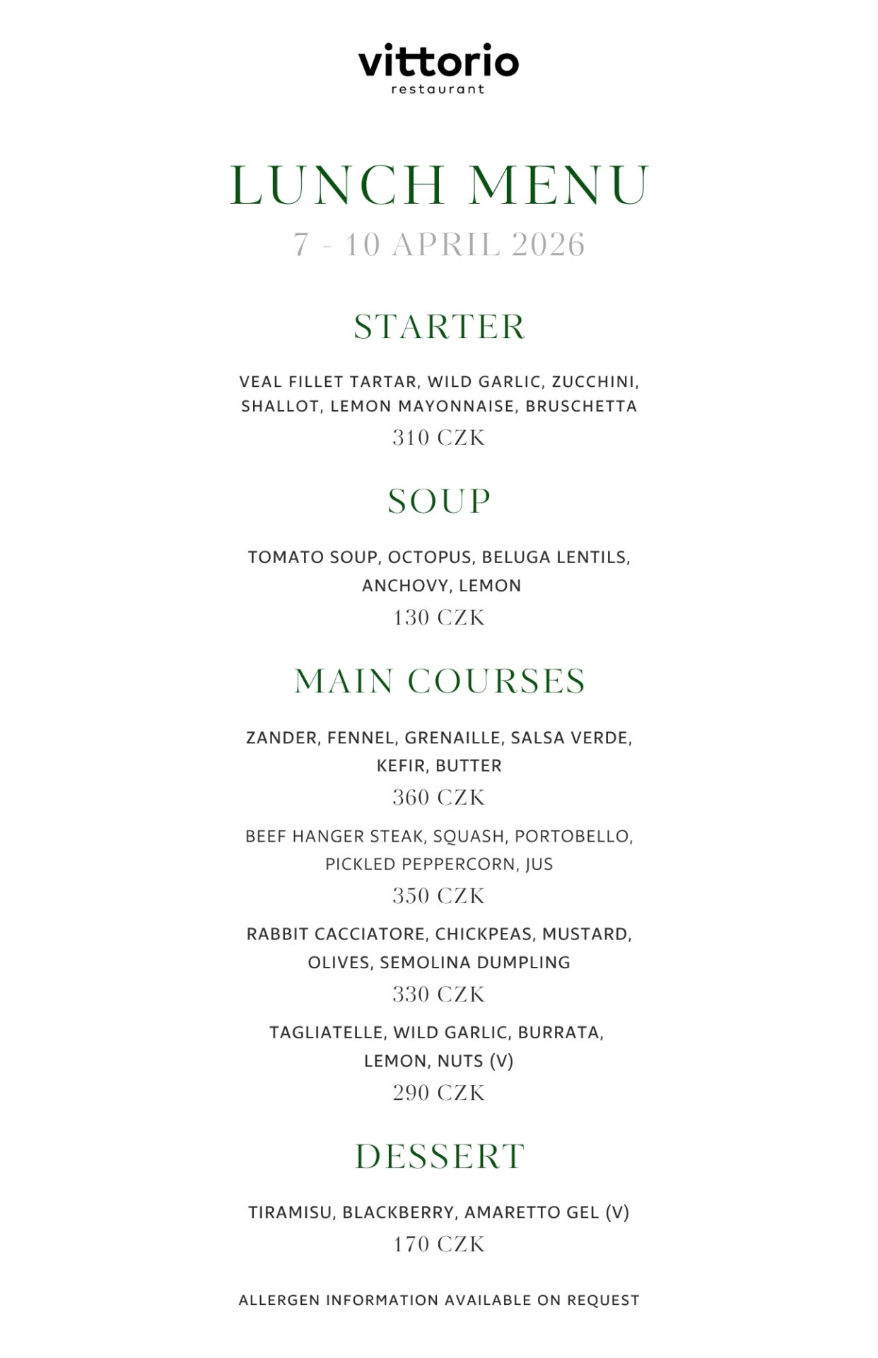 We prepare our weekly menu with a focus on freshness, seasonality, and fast service. The selection is regularly updated to offer balanced, high-quality dishes for every day.